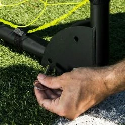 - Precision locking pins secure the poles together and galvanized ground stakes keep the goal attached firmly to the ground