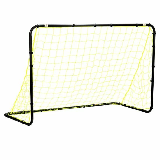 Transform your backyard into a soccer field with this Franklin Sports 4-ft x 6-ft Black Powder Coated Steel Non-Folding Soccer Goal. Aspiring players can practice every day, develop precision kicking skills, play short sided soccer with friends or family as they develop their goal keeping skills. A vibrant yellow net also adds an eye-catching, cool look.