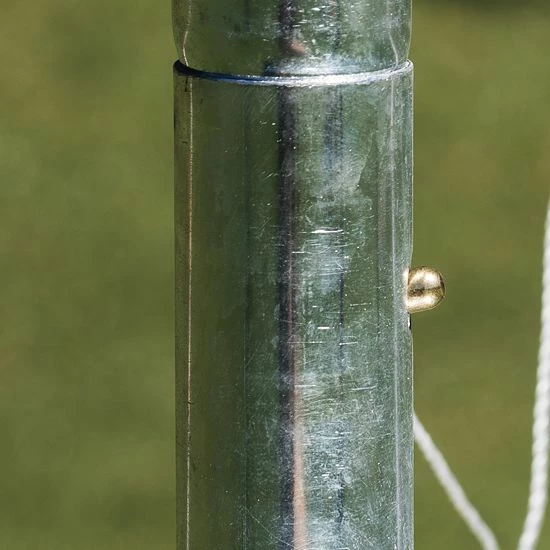 - Precision locking pins secure the poles together and galvanized ground stakes keep the goal attached firmly to the ground