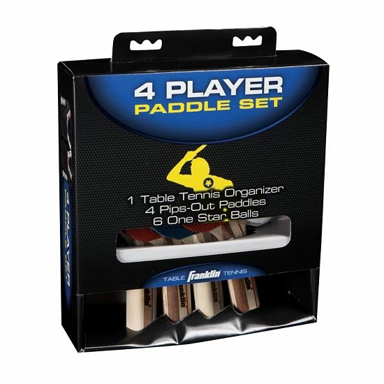 Upgrade your table tennis paddles and keep they protected and organized with this Franklin Sports 4-player paddle set.