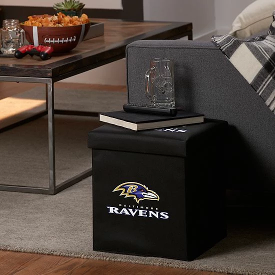 Place this Baltimore Ravens ottoman from Franklin Sports in your living space or dorm room for ample storage and team-pride decor.