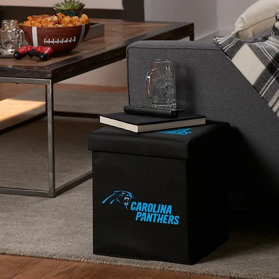 Place this Carolina Panthers ottoman from Franklin Sports in your living space or dorm room for ample storage and team-pride decor.