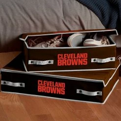 This Franklin Sports Cleveland Browns collapsible storage bin conveniently slides under your bed for storage.