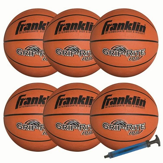 This Franklin Grip-Rite 100 team basketball pack includes six basketballs and a convenient hand pump.