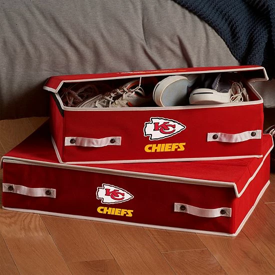 This Franklin Sports Kansas City Chiefs collapsible storage bin conveniently slides under your bed for storage.
