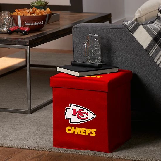 Place this Kansas City Chiefs ottoman from Franklin Sports in your living space or dorm room for ample storage and team-pride decor.