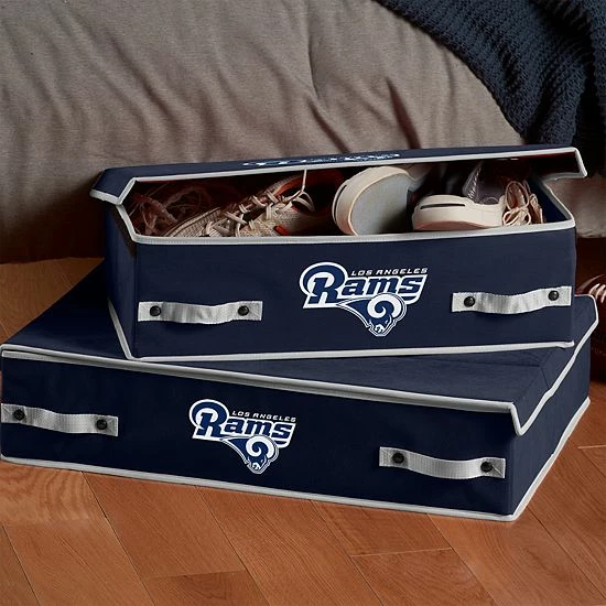 This Franklin Sports Los Angeles Rams collapsible storage bin conveniently slides under your bed for storage.