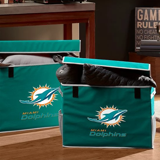 This Franklin Sports Miami Dolphins collapsible footlocker storage bin is perfect to contain unnecessary clutter.