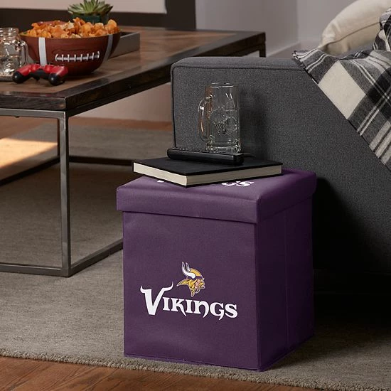 Place this Minnesota Vikings ottoman from Franklin Sports in your living space or dorm room for ample storage and team-pride decor.