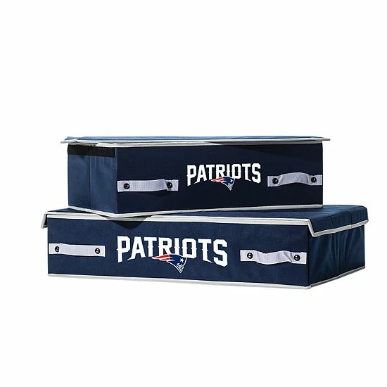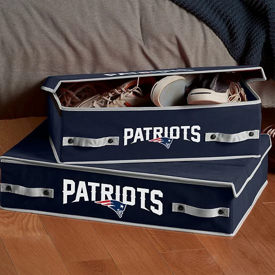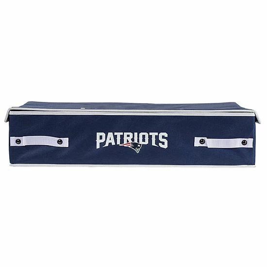 This Franklin Sports New England Patriots collapsible storage bin conveniently slides under your bed for storage.