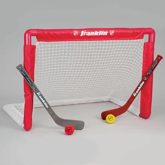 Get ready for the face-off with this Franklin Sports NHL mini hockey goal set.