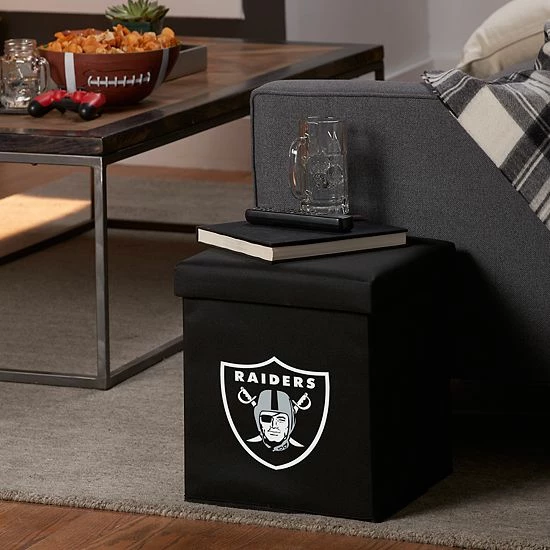 Place this Oakland Raiders ottoman from Franklin Sports in your living space or dorm room for ample storage and team-pride decor.