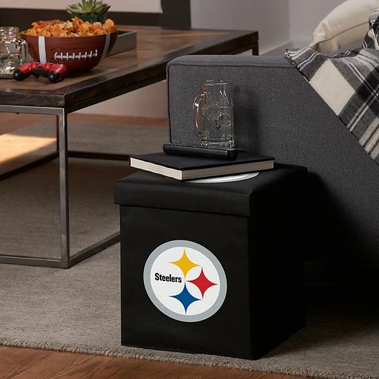 Place this Pittsburgh Steelers ottoman from Franklin Sports in your living space or dorm room for ample storage and team-pride decor.