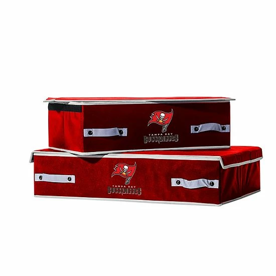 This Franklin Sports Tampa Bay Buccaneers collapsible storage bin conveniently slides under your bed for storage.