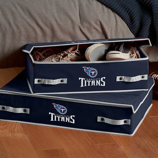This Franklin Sports Tennessee Titans collapsible storage bin conveniently slides under your bed for storage.