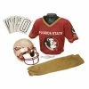 - Set includes: short-sleeved jersey, pants, helmet, shoulder insets, & iron-on number kit