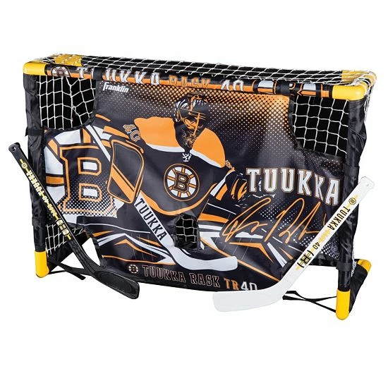 Franklin Sports and Boston Bruins’ goaltender Tuukka Rask have teamed up to create this perfect mini hockey set for hockey fans everywhere.