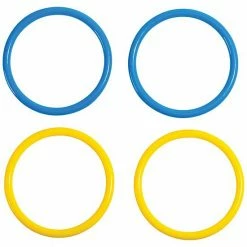 - Kid-friendly plastic toss rings (2) yellow and (2) blue