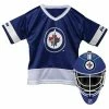 Let your aspiring hockey great gear up in their favorite NHL team colors with this St. Louis Blues costume goalie face mask and jersey set from Franklin.